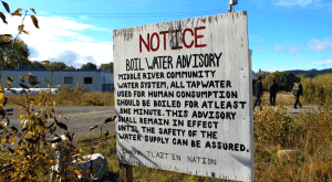 Drinking water sign one of hundreds of Canadian Indian reservations without potable water. Picture is from 2019; issue is unchanged in 2024. In 2024! Photo credit: Joseph Quesnel.